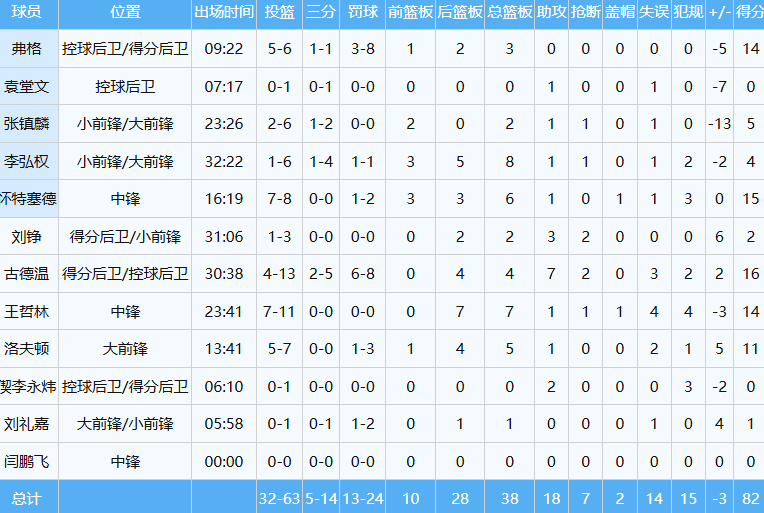 本场比赛,程帅澎时隔一个多月迎来了复出,替补出战约15分钟,投篮6中2,其中三分2中1,罚球5中4贡献9分3板,出现了3次失误,这哥们过去遭遇了右侧臀大肌部分撕裂。
